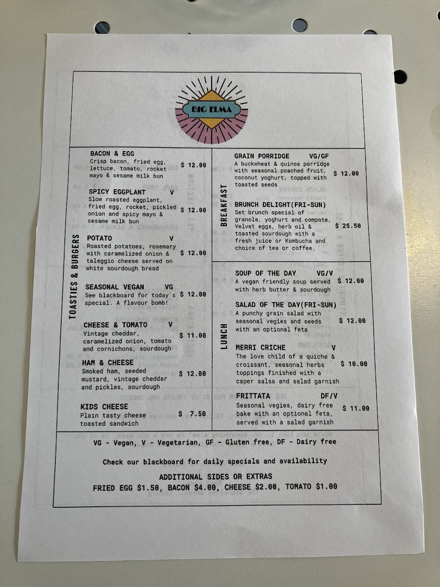 Big Elma Menu
